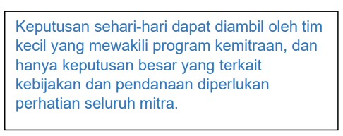 • Para mitra/organisasi membuat bersama ketentuan-ketentuan yang berlaku, disesuaikan dengan peraturan yang berlaku di masing-masing organisasi