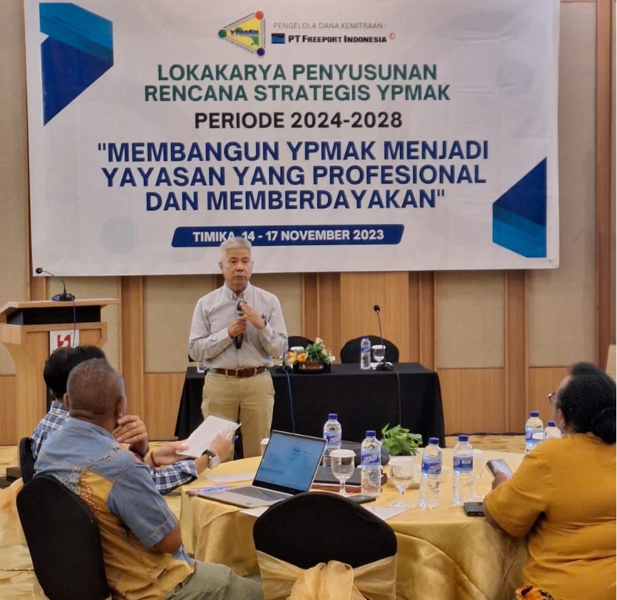Secara resmi, rangkaian diskusi dan lokakarya penyusunan Rencana Strategis (Renstra) YPMAK 2024 – 2028 itu dimulai dengan pembukaan di hotel Swiss Bell Timika, 14 November 2023. Billy Korwa selaku Deputi Program YPMAK, memberikan sambutan, arahan, dan sekaligus membuka lokakarya untuk menentukan kegiatan dan sasaran Renstra 5 tahun kedepan.