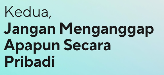 Saya sering ditanya apa yang harus dilakukan dalam suatu kemitraan yang memiliki kesalahpahaman dan harapan yang tidak sesuai. Untuk itu saya sering merujuk para mitra agar mempelajari buku “Empat Perjanjian” karya Don Miguel Ruiz. Kearifannya yang sederhana namun mendalam, dapat memperkenalkan prinsip-prinsip penting ke dalam dinamika kemitraan apa pun.